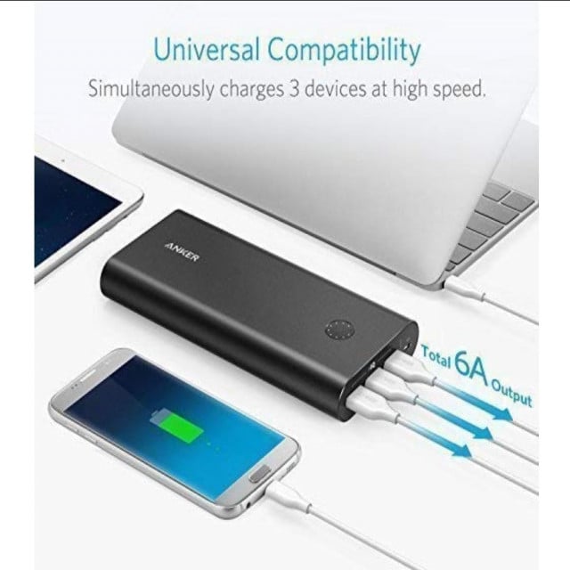 انكر شاحن متنقل سعة 26800 بتقنية الشحن الذكي Iq الجيل الاول 3 مخارج Usb و مدخلين
