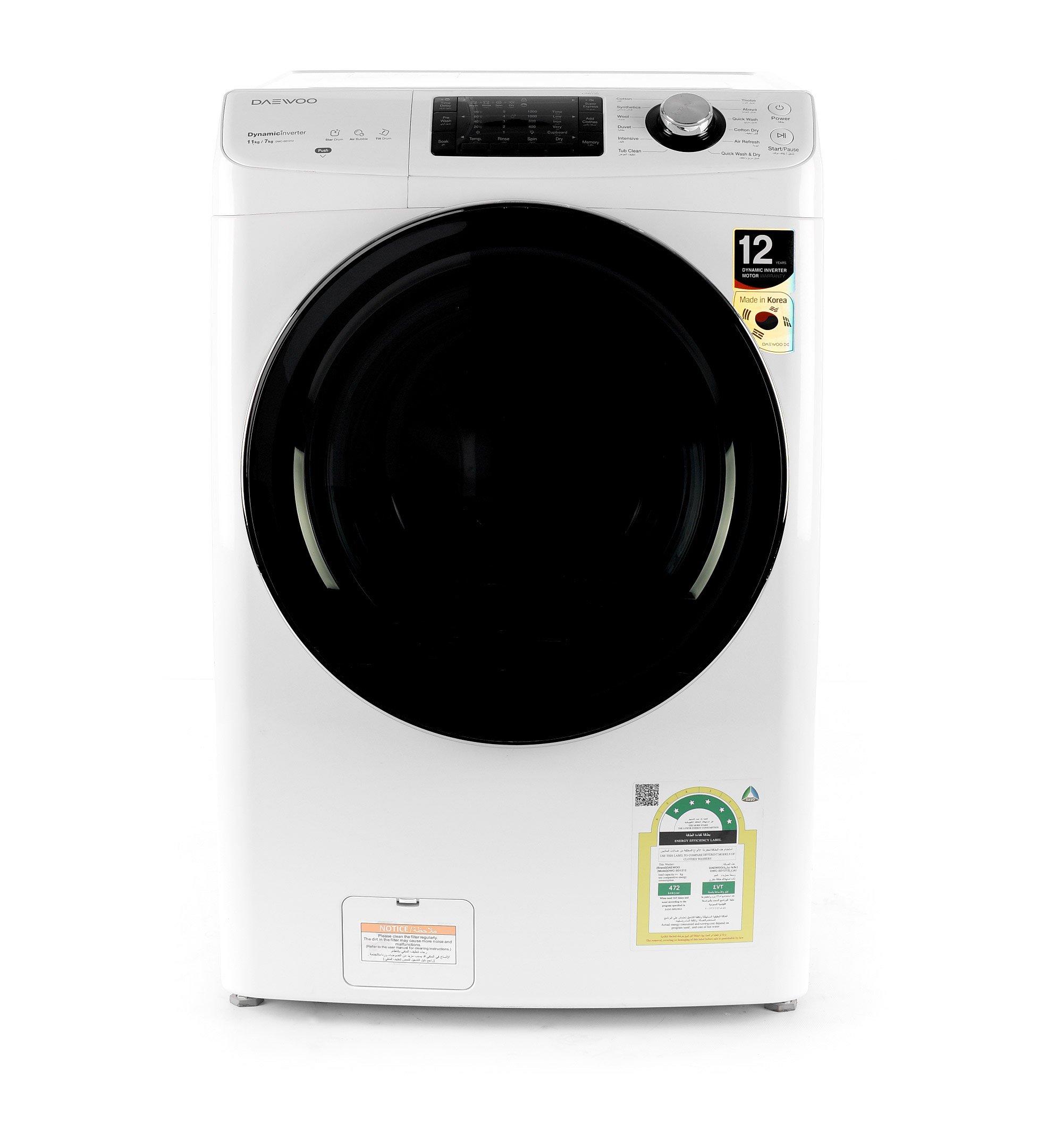 غسالة دايو 11 كيلو تحميل أمامي مع نشاف 7 كيلو أبيض بأقل سعر الأصلي