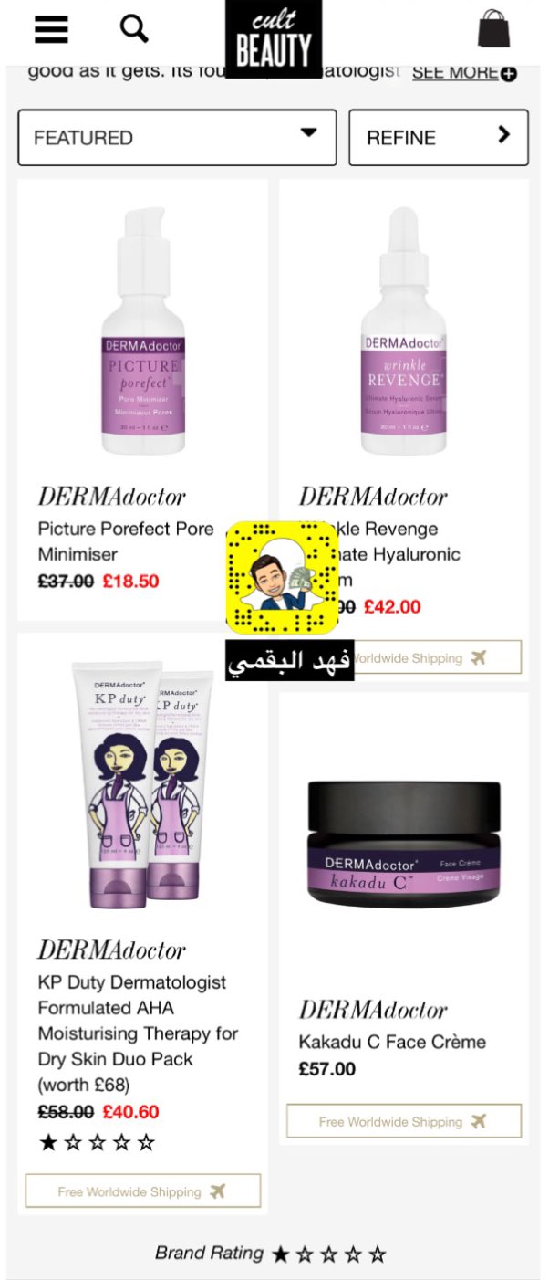 فهد البقمي A Twitter نظرا لأن كثيرين يبحثون عن ماركة Dermadoctor بسعر عادل خصوصا بعد تسويق بعض المشاهير لها بشكل جنوني الموقع التالي توجد به منتجات هذه الشركة وكل فترة يضيف مجموعة